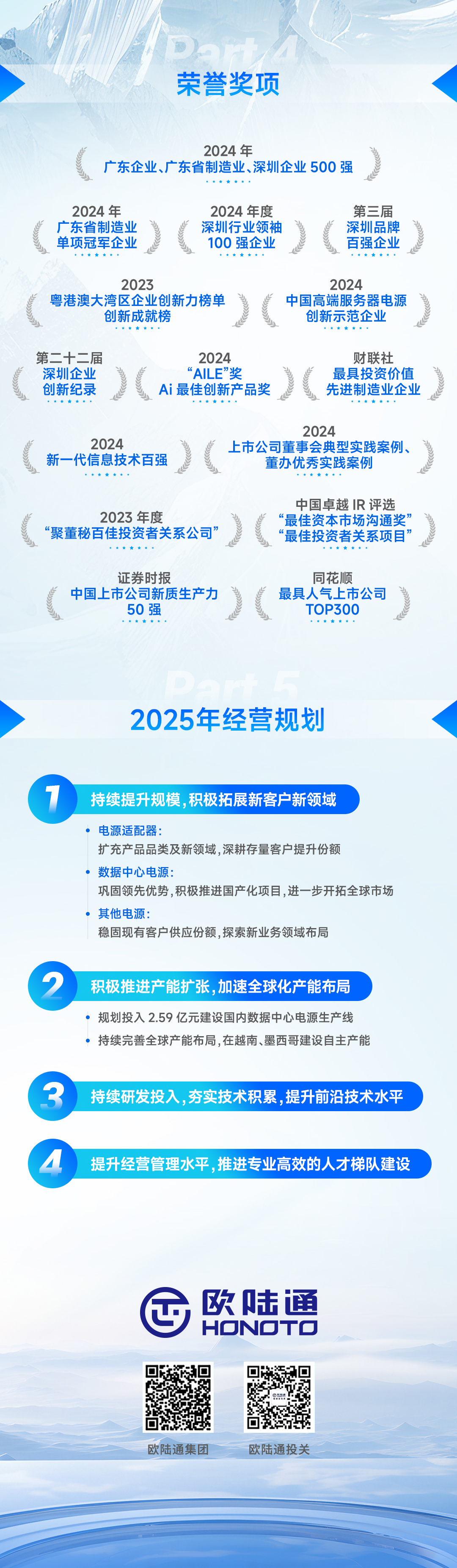 歐陸通公布2024年報及2025年一季報,盈利質(zhì)量穩(wěn)步提升,高功率服務(wù)器電源收入增長強勁