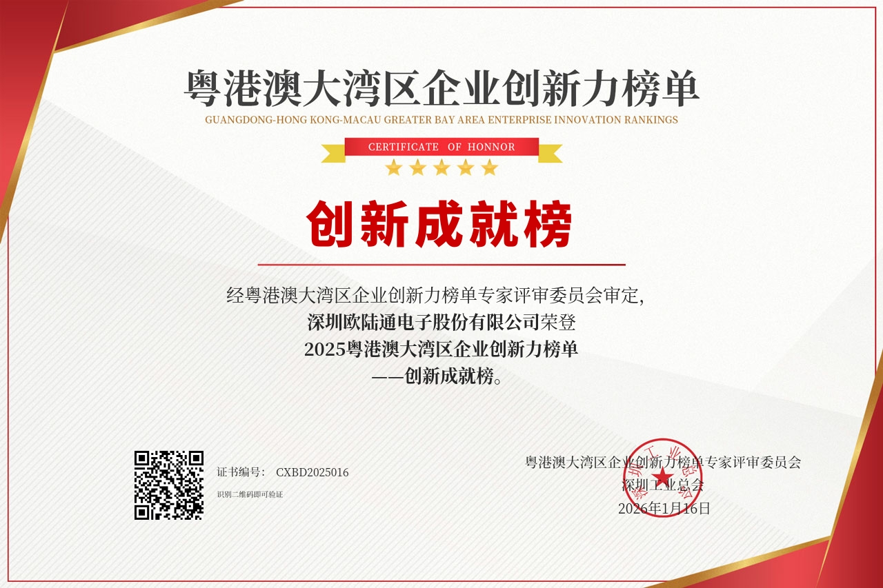 憑借著卓越的自主創(chuàng)新能力和顯著的市場(chǎng)表現(xiàn),歐陸通已連續(xù)六年蟬聯(lián)“粵港澳大灣區(qū)企業(yè)創(chuàng)新力榜單——?jiǎng)?chuàng)新成就榜”,公司副董事長(zhǎng)王越天先生再度入選“粵港澳大灣區(qū)企業(yè)創(chuàng)新力榜單——?jiǎng)?chuàng)新杰出人物榜”。