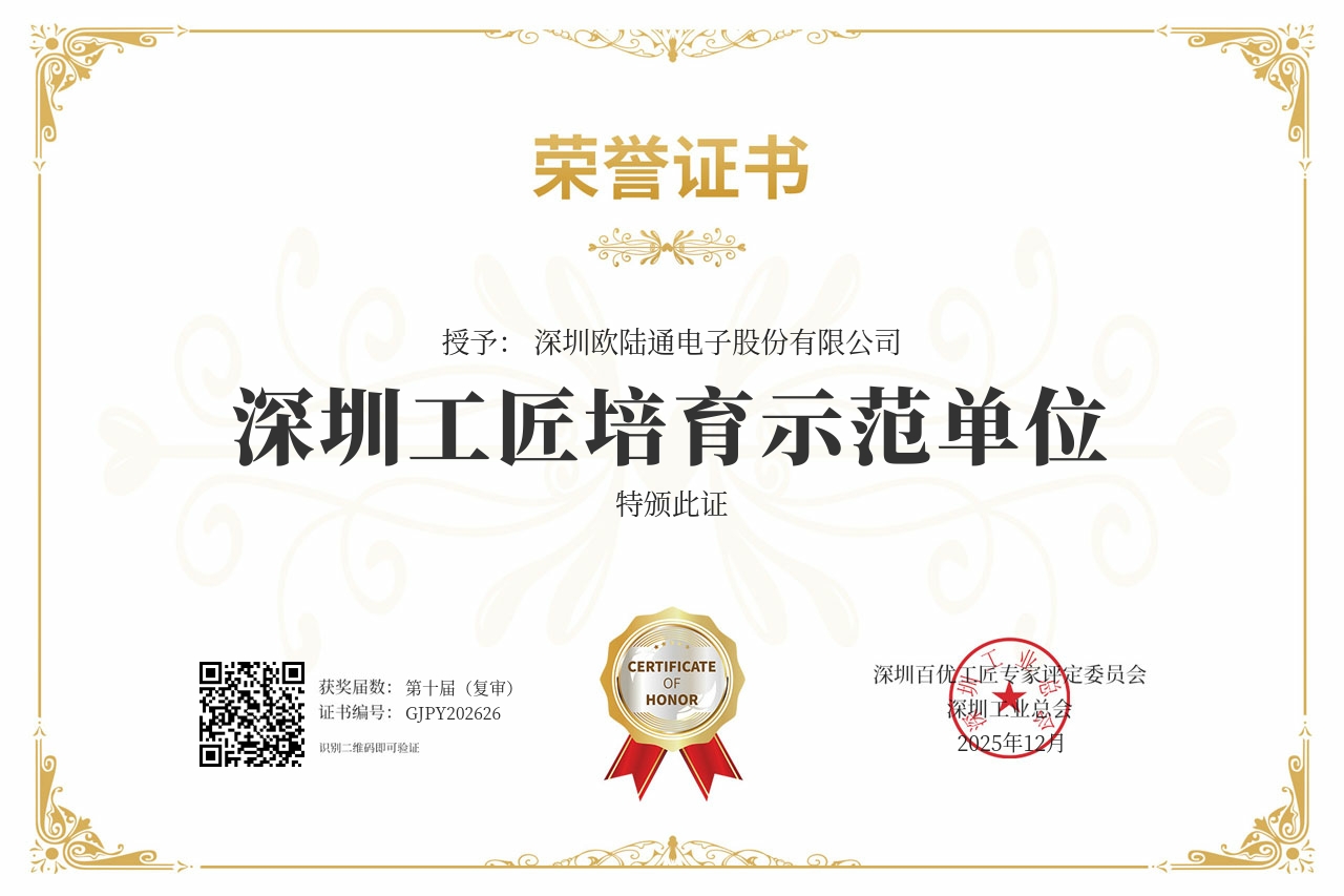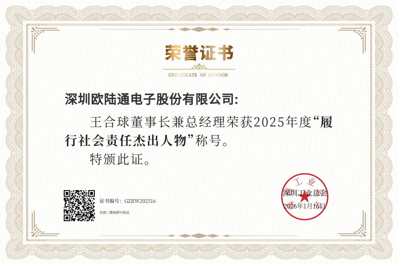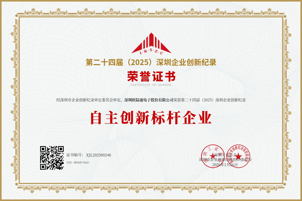 憑借在技術(shù)創(chuàng)新、區(qū)域產(chǎn)業(yè)引領(lǐng)、社會(huì)責(zé)任踐行等維度的綜合表現(xiàn),歐陸通一舉斬獲九項(xiàng)大獎(jiǎng)。歐陸通入選“2025粵港澳大灣區(qū)企業(yè)創(chuàng)新力榜單-創(chuàng)新成就榜”,榮獲“深圳工匠培育示范單位”、“2025年度履行社會(huì)責(zé)任杰出企業(yè)”、“第二十四屆深圳企業(yè)創(chuàng)新紀(jì)錄-自主創(chuàng)新標(biāo)桿企業(yè)”獎(jiǎng)以及兩項(xiàng)“第二十四屆深圳企業(yè)創(chuàng)新(中國(guó))紀(jì)錄”;歐陸通董事長(zhǎng)兼總經(jīng)理王合球先生,榮獲“2025年度履行社會(huì)責(zé)任杰出人物”;歐陸通副董事長(zhǎng)王越天先生,入選“2025粵港澳大灣區(qū)企業(yè)創(chuàng)新力榜單-創(chuàng)新杰出人物榜”,榮獲“第二十四屆深圳企業(yè)創(chuàng)新紀(jì)錄-創(chuàng)新突出貢獻(xiàn)人物”。